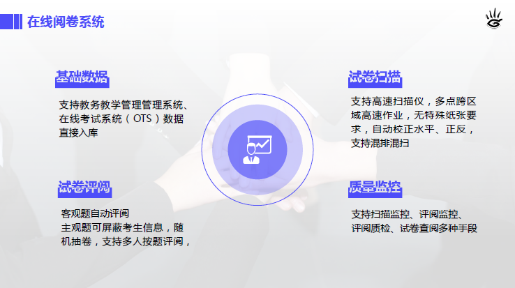 AI考試系統(tǒng)采用一平兩端,數(shù)據(jù)同步的方式,實現(xiàn)微信端和電腦端的題庫系統(tǒng),在線考試、在線閱卷等功能。系統(tǒng)支持整個在線題庫發(fā)布、在線測試和作業(yè)發(fā)布、交流互動、成績評測和學習成果反饋教學流程等功能,主要包括在線考試系統(tǒng)、在線閱卷系統(tǒng)、AI在線考試、AI在線閱卷。