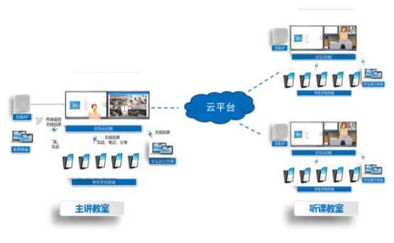 “助教”、“助學(xué)”、“助研”三位一體,實現(xiàn)電子閱讀、實時展示、知識建構(gòu)、高清錄播、遠(yuǎn)程互動、多屏顯示、無線投影、人機(jī)交互、移動學(xué)習(xí)等多種功能。